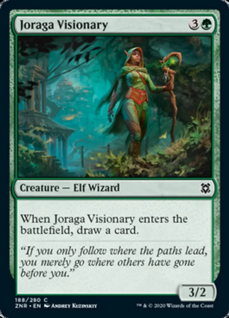 Magic: the Gathering (mtg) common Creature — Elf Wizard Joraga Visionary from Zendikar Rising (znr) last updated 2026-02-21 16:29:36