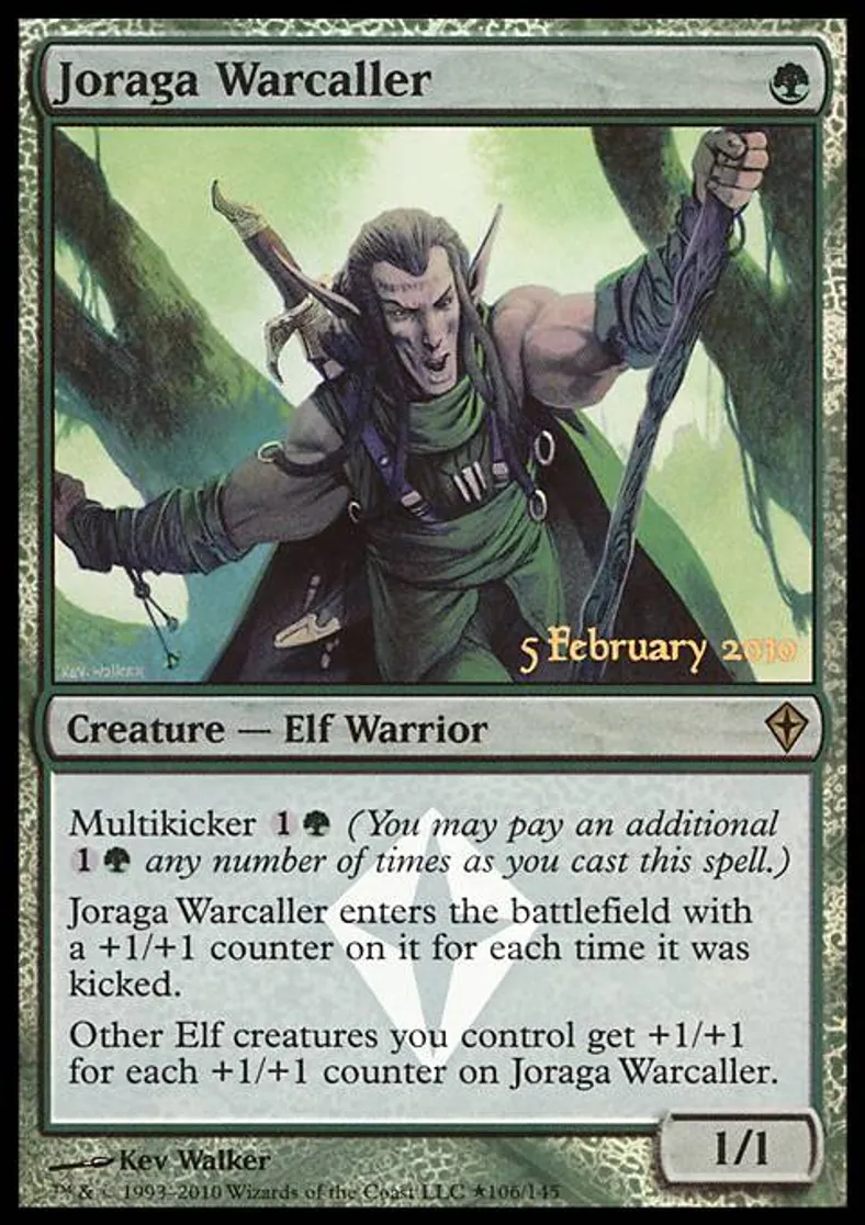 Magic: the Gathering (mtg) Special Creature - Elf Warrior Joraga Warcaller from Launch Party & Release Event Promos (pREL2) last updated 2026-02-24 16:01:02