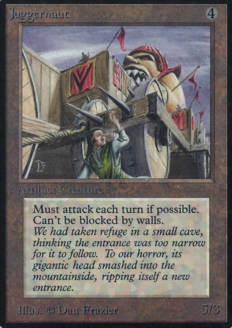 | Oracle Text | Juggernaut attacks each turn if able. Juggernaut can't be blocked by Walls. | ||