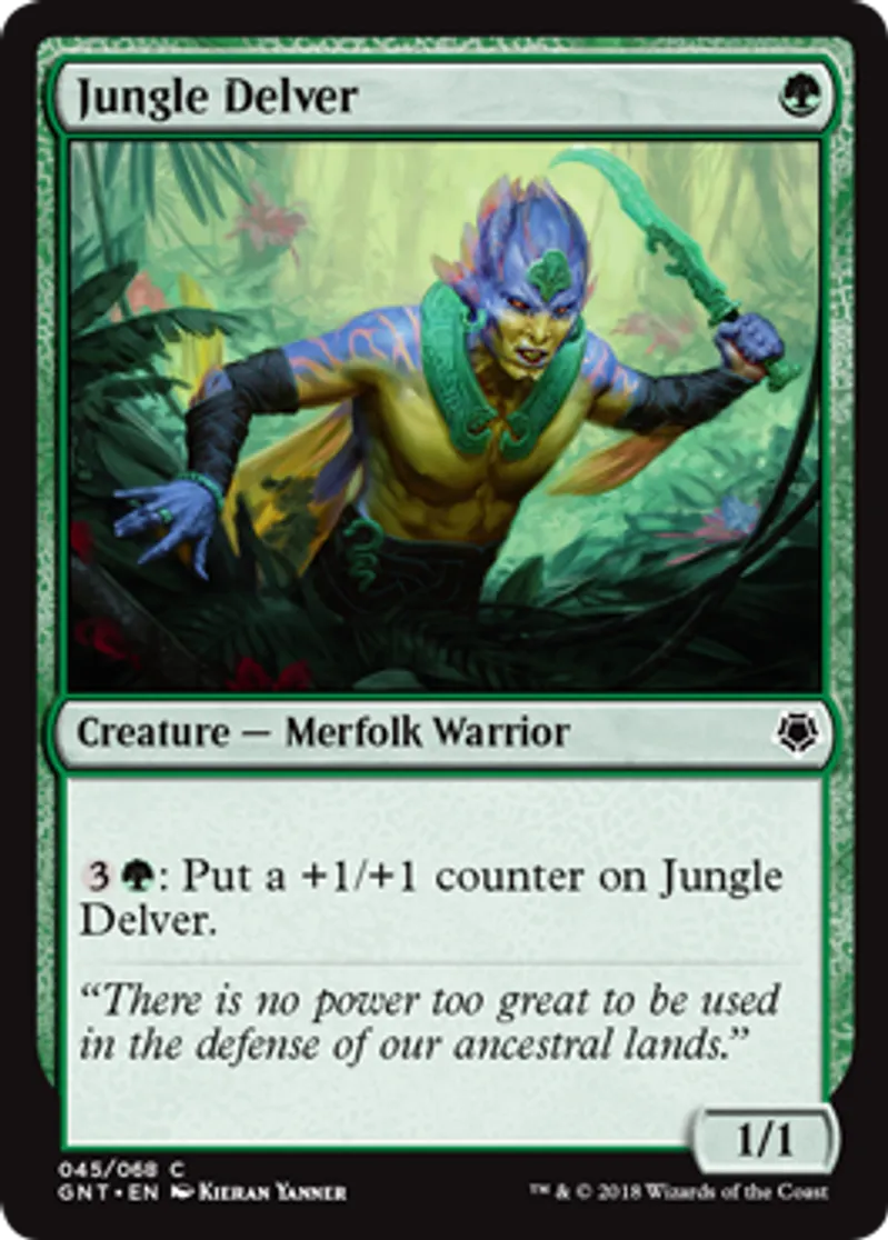 Magic: the Gathering (mtg) Common Creature - Merfolk Warrior Jungle Delver from Game Night (GNT) last updated 2026-02-24 16:07:02