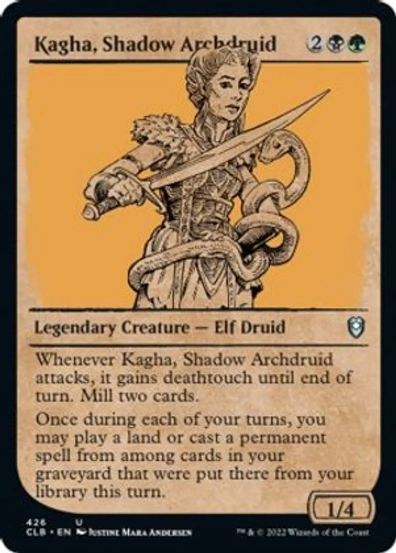 Magic: the Gathering (mtg) Uncommon Legendary Creature — Elf Druid Kagha, Shadow Archdruid from Commander Legends: Battle for Baldur's Gate (CLB) last updated 2026-02-21 16:07:35