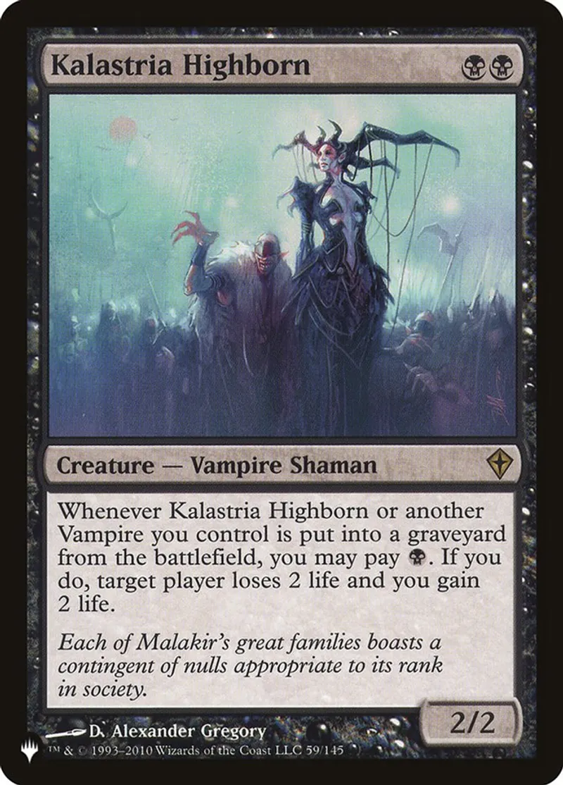 Magic: the Gathering (mtg) Rare Creature — Vampire Shaman Kalastria Highborn from The List (plist) last updated 2026-02-25 14:32:08