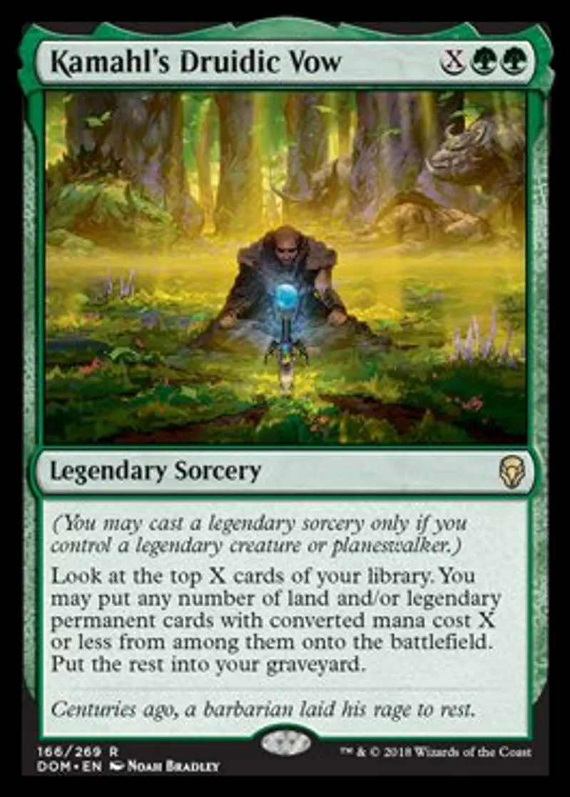 Magic: the Gathering (mtg) Rare Legendary Sorcery Kamahl's Druidic Vow from Dominaria (DOM) last updated 2026-02-24 16:05:33