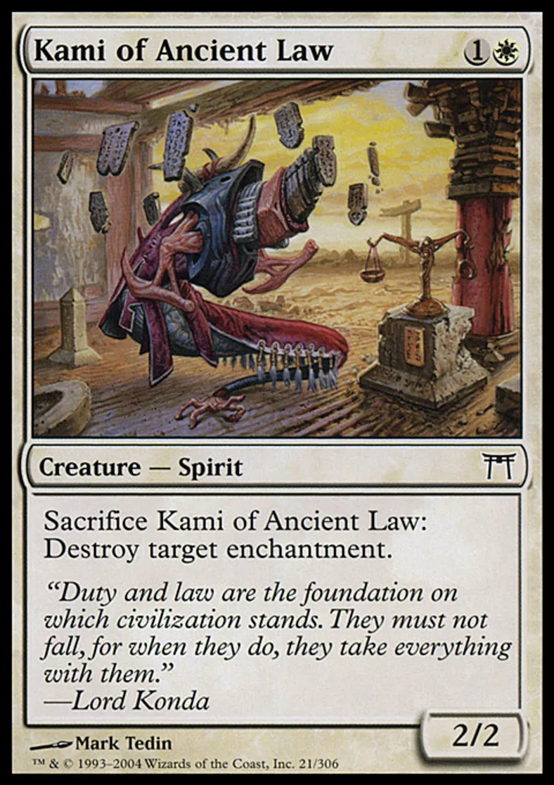 | Oracle Text | Sacrifice Kami of Ancient Law: Destroy target enchantment. | ||