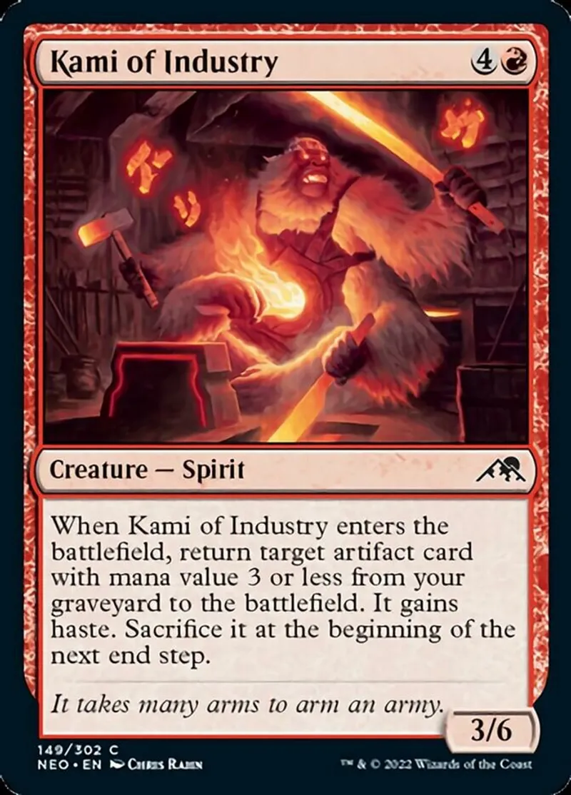 Kami of Industry is a common in the set Kamigawa: Neon Dynasty.