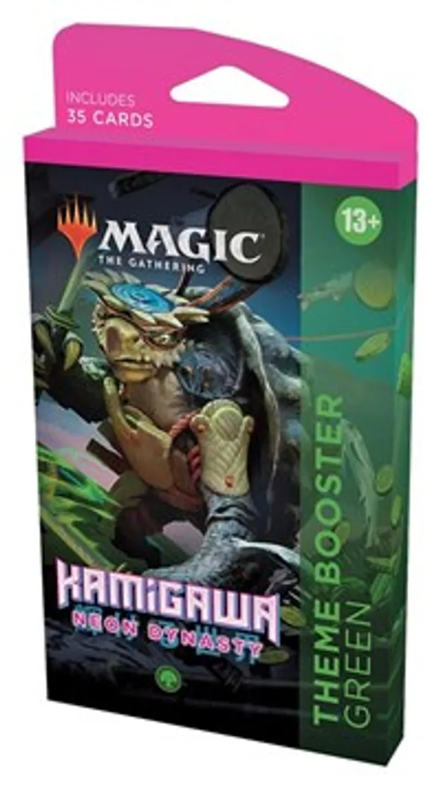| Oracle Text | The Kamigawa: Neon Dynasty Green Theme Booster contains 35 cards, with a combination of 1–2 cards of rarity Rare or higher and 33–34 Uncommon and/or Common cards.