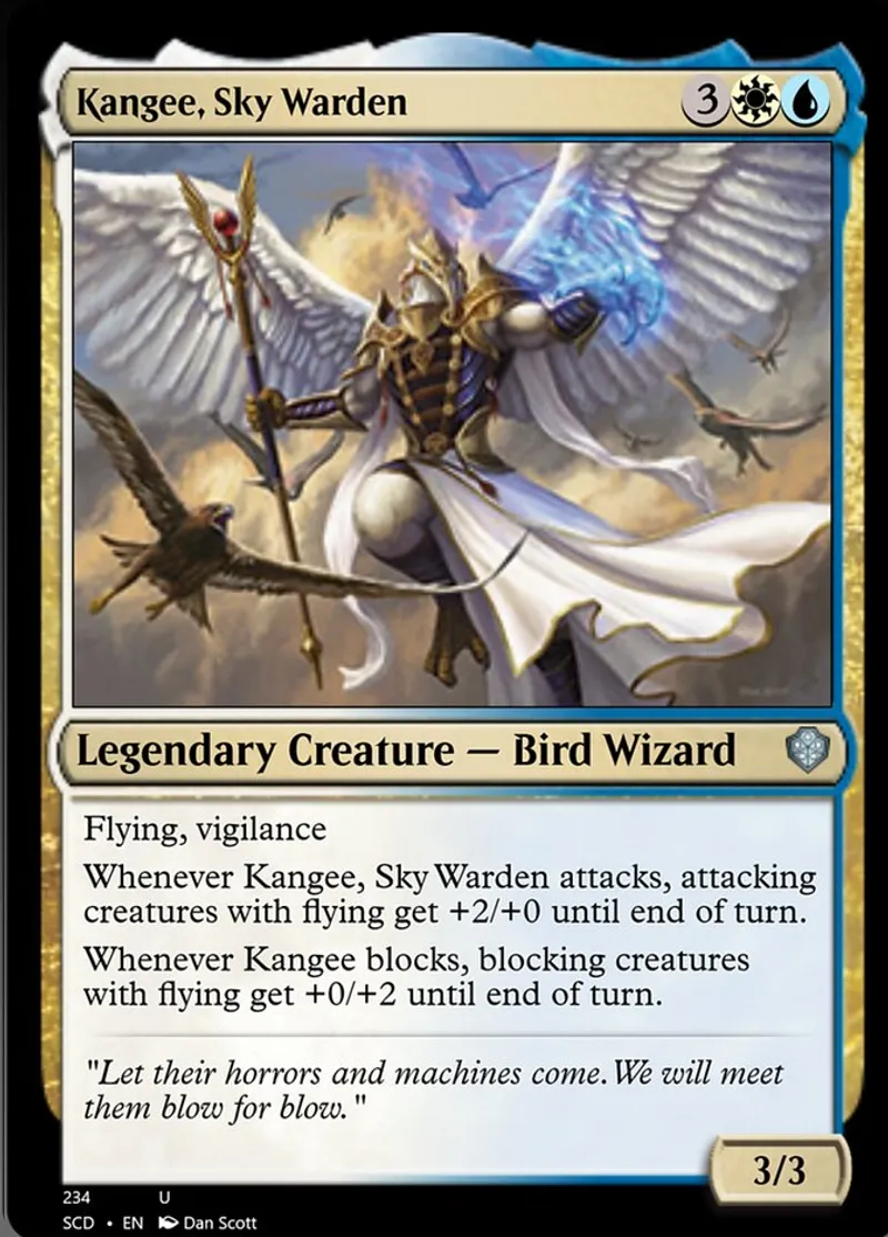 Magic: the Gathering (mtg) uncommon Legendary Creature — Bird Wizard Kangee, Sky Warden from Starter Commander Decks (scd) last updated 2026-02-21 16:19:33