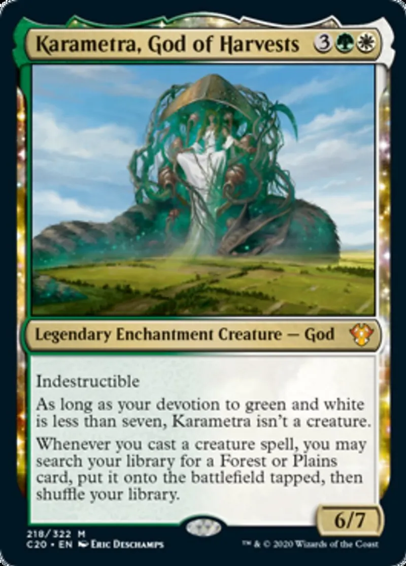 Magic: the Gathering (mtg) Mythic Rare Legendary Enchantment Creature — God Karametra, God of Harvests from Commander 2020 (C20) last updated 2026-02-24 15:02:02