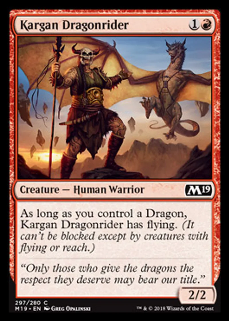 Magic: the Gathering (mtg) Common Creature - Human Warrior Kargan Dragonrider from Core Set 2019 (M19) last updated 2026-02-21 16:53:03