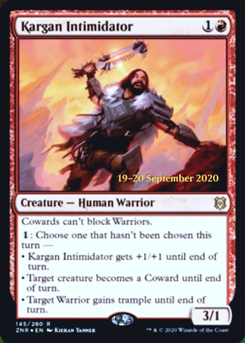 Magic: the Gathering (mtg) Rare Creature — Human Warrior Kargan Intimidator from Prerelease Cards (pPRE) last updated 2026-02-21 16:31:07