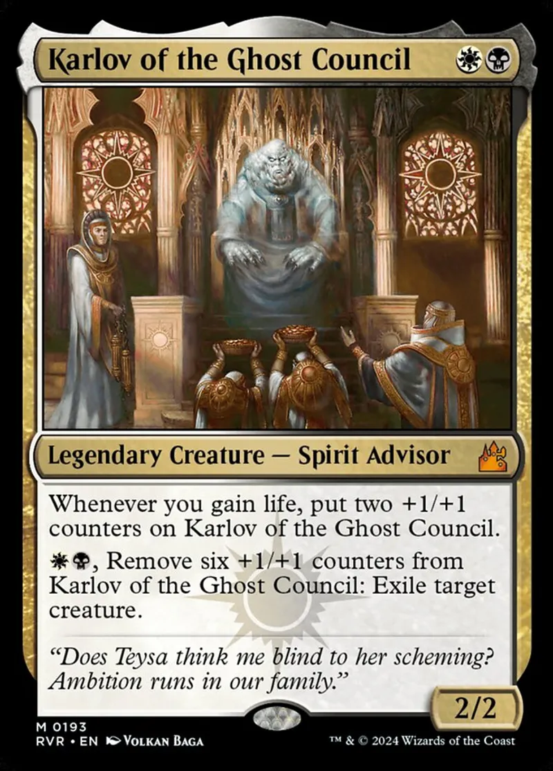 | Oracle Text | Whenever you gain life, put two +1/+1 counters on Karlov of the Ghost Council.