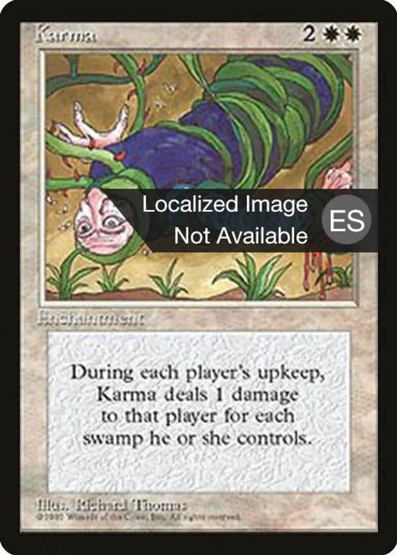 | Oracle Text | At the beginning of each player's upkeep, Karma deals damage to that player equal to the number of Swamps they control. | ||