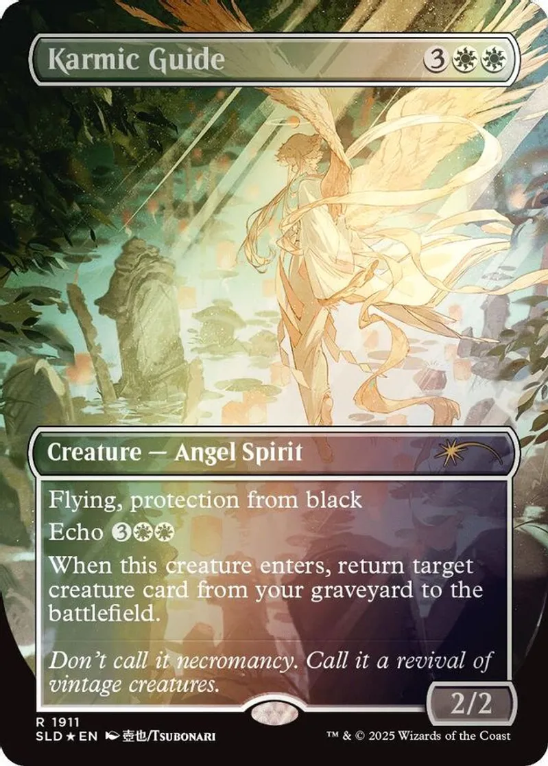 Magic: the Gathering (mtg) Rare creature — angel spirit Karmic Guide from Secret Lair Drop Series (SLD) last updated 2025-12-13 15:36:32