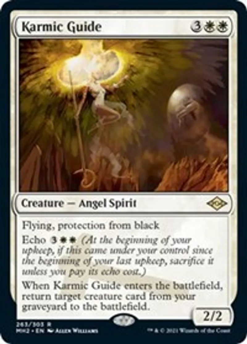 Magic: the Gathering (mtg) Rare Creature - Angel Spirit Karmic Guide from Modern Horizons 2 (MH2) last updated 2026-02-24 15:32:32