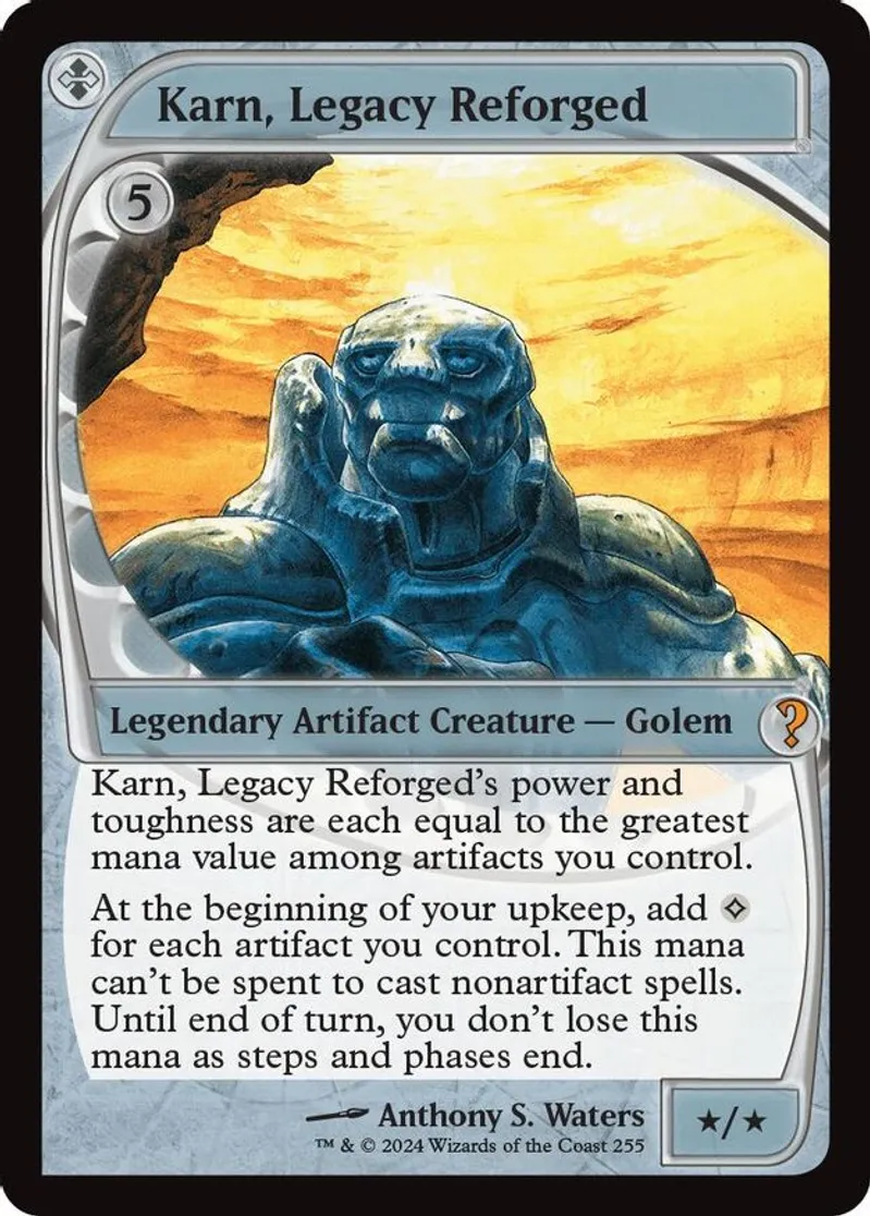 | Oracle Text | karn, legacy reforged's power and toughness are each equal to the greatest mana value among artifacts you control.