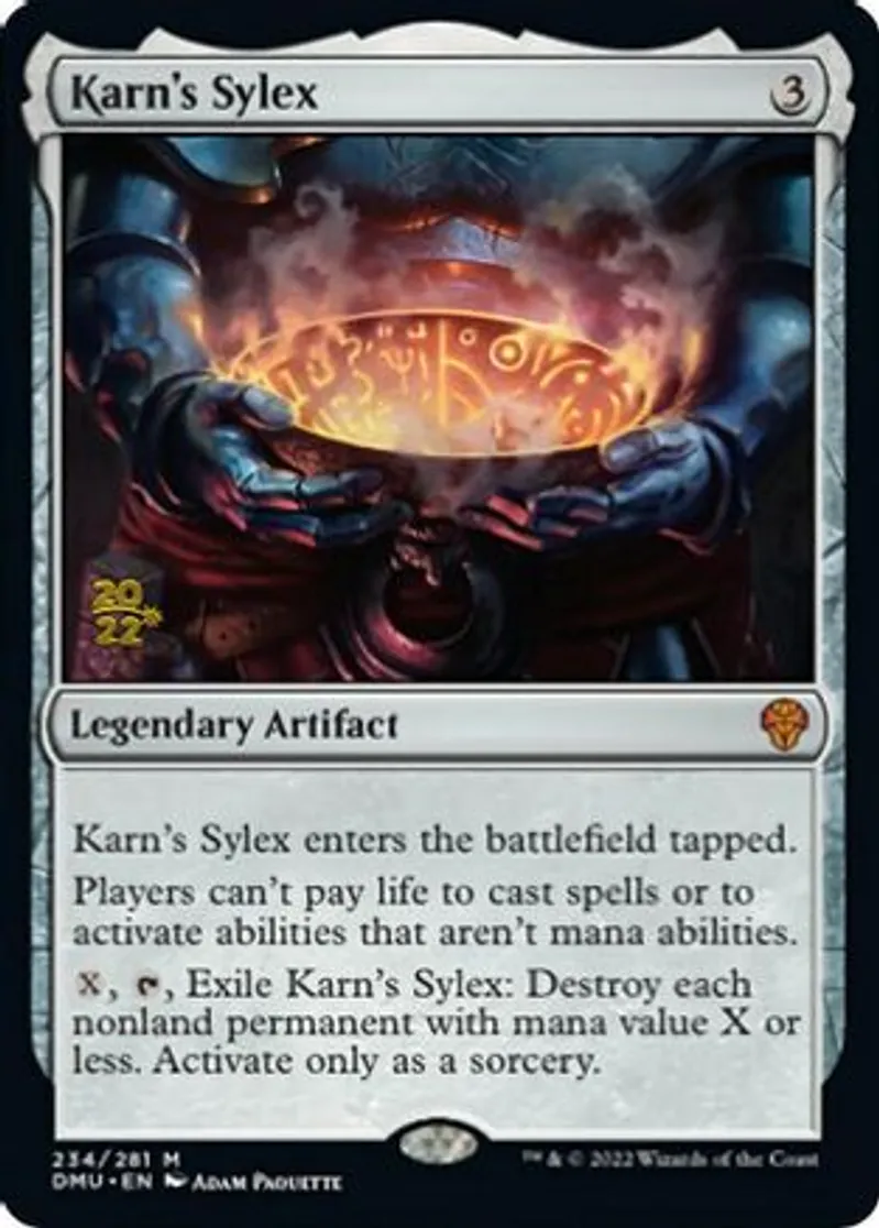 Karn's Sylex is a Mythic Rare in the set Prerelease Cards.