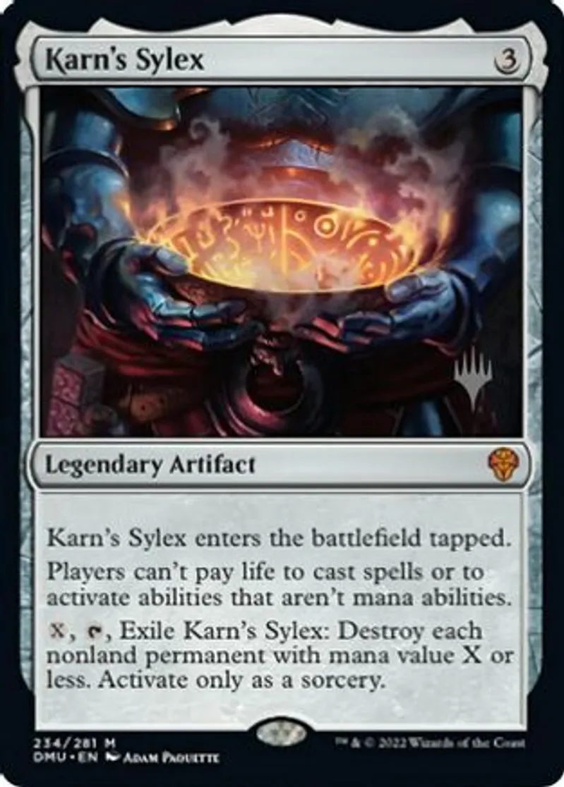 Magic: the Gathering (mtg) Mythic Rare Legendary Artifact Karn's Sylex from Promo Pack: Dominaria United (pDMU) last updated 2026-02-24 14:55:03