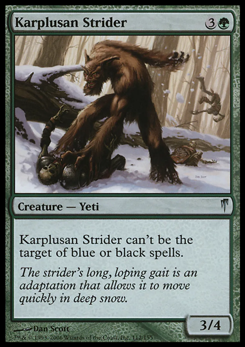 | Oracle Text | Karplusan Strider can't be the target of blue or black spells. | ||