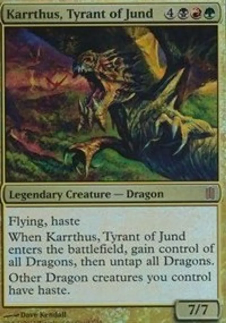 | Oracle Text | Flying, haste When Karrthus, Tyrant of Jund comes into play, gain control of all Dragons, then untap all Dragons. Other Dragon creatures you control have haste. | ||