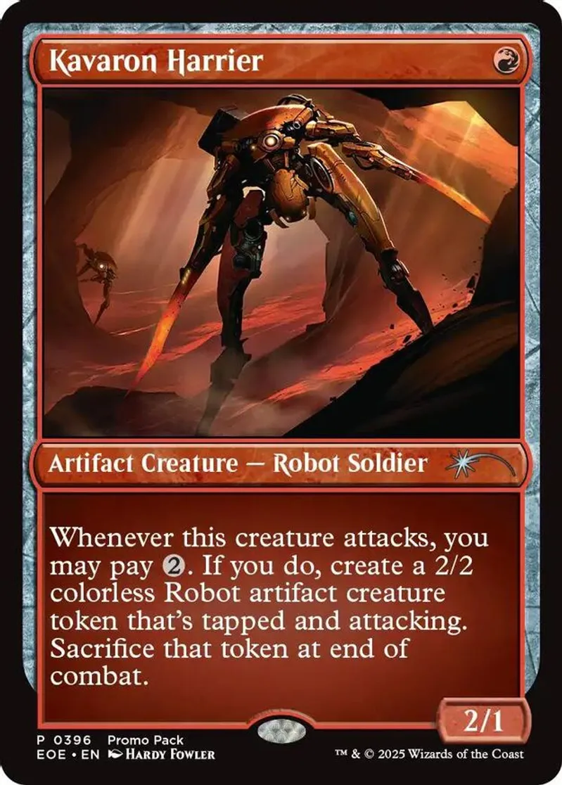 Magic: the Gathering (mtg) Promo artifact creature — robot soldier Kavaron Harrier from Promo Pack: Edge of Eternities (PPEOE) last updated 2026-01-17 17:45:36