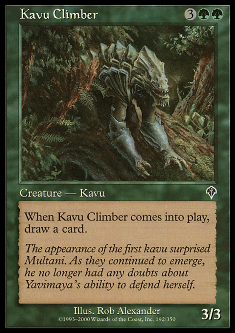 | Oracle Text | When Kavu Climber enters the battlefield, draw a card. | ||