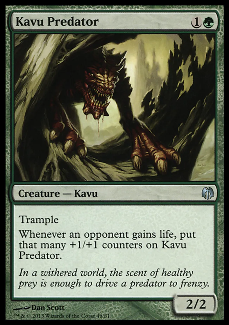 Whenever an opponent gains life, put that many +1/+1 counters on Kavu Predator. | ||