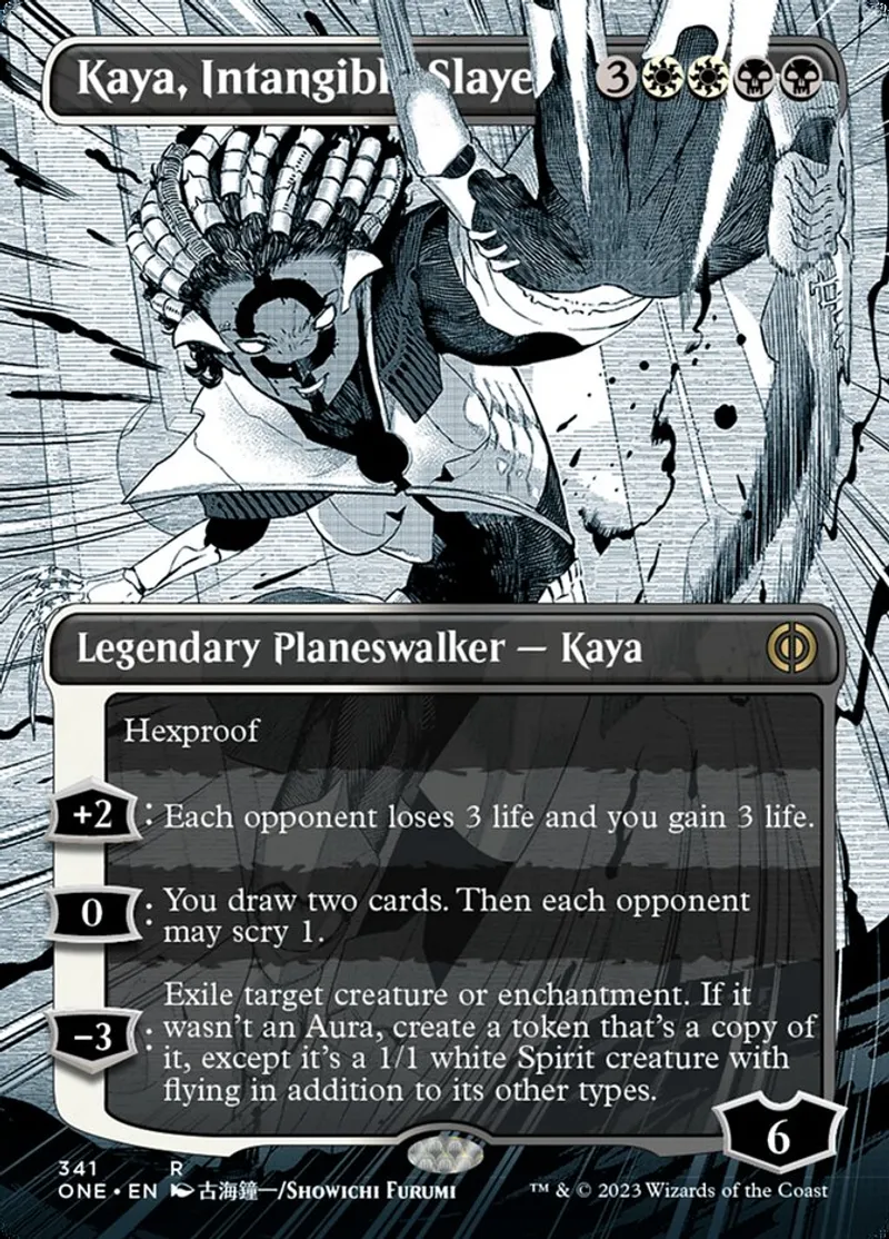 Kaya, Intangible Slayer (Borderless) is a Rare in the set Phyrexia: All Will Be One.