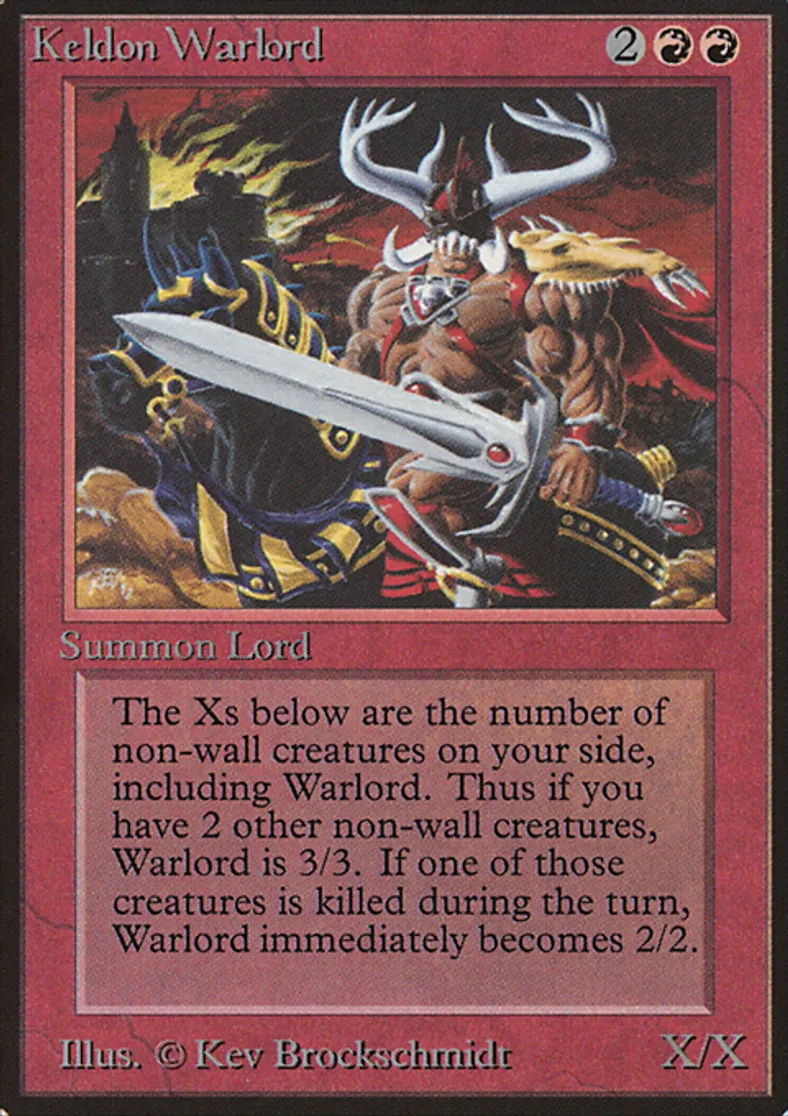 | Oracle Text | Keldon Warlord's power and toughness are each equal to the number of non-Wall creatures you control. | ||