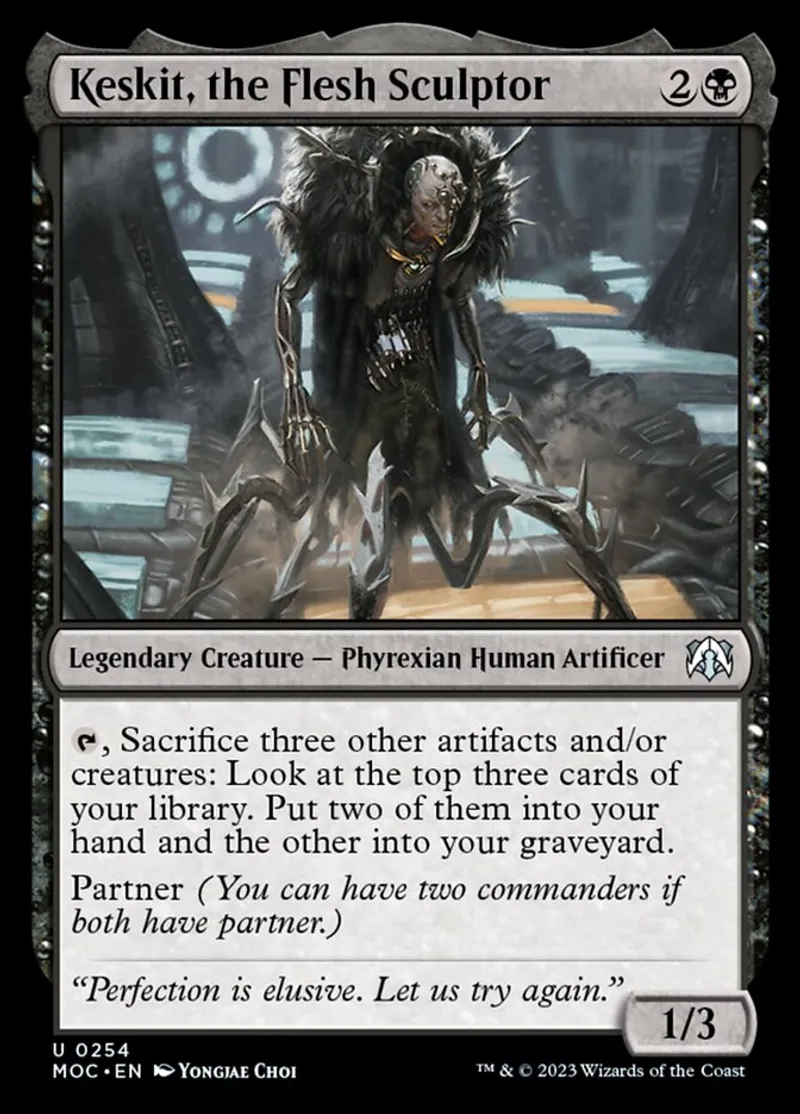 Magic: the Gathering (mtg) uncommon Legendary Creature — Phyrexian Human Artificer Keskit, the Flesh Sculptor from March of the Machine Commander (moc) last updated 2026-02-24 15:42:02