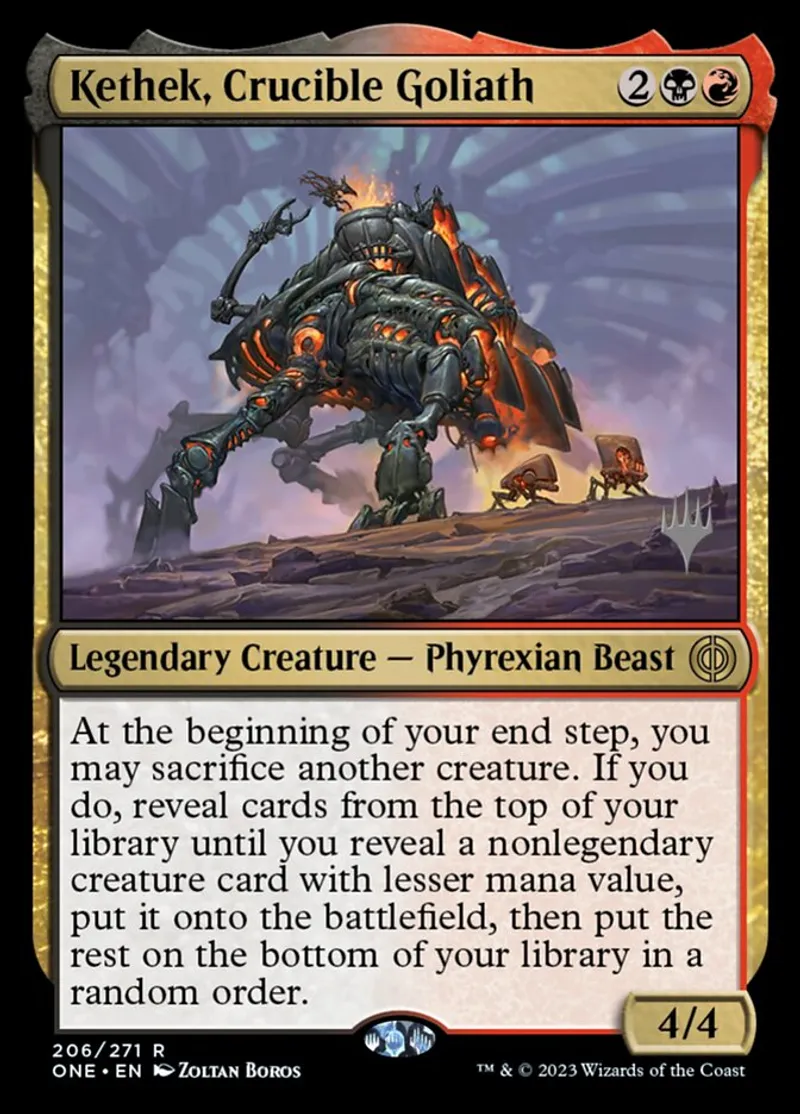 Magic: the Gathering (mtg) Rare Legendary Creature — Phyrexian Beast Kethek, Crucible Goliath from Promo Pack: Phyrexian: All Will Be One (pONE) last updated 2026-02-21 16:22:02