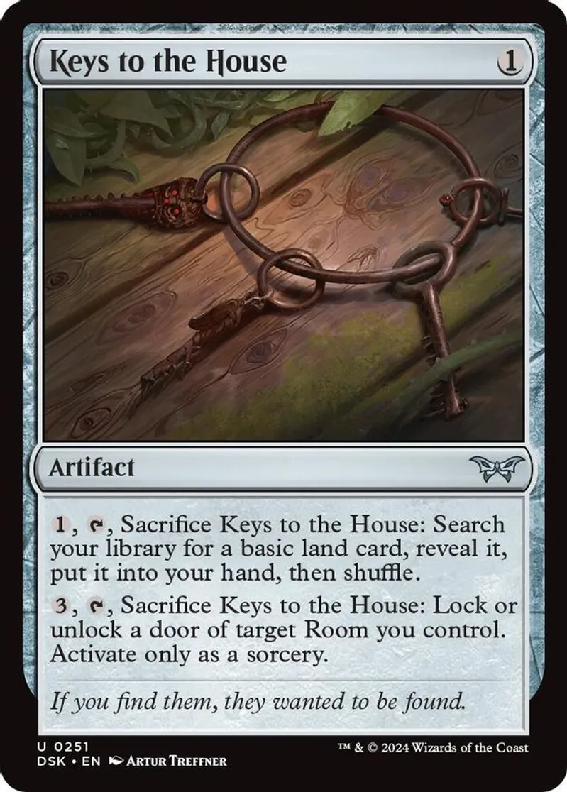 Magic: the Gathering (mtg) Uncommon artifact Keys to the House from Duskmourn: House of Horror (DSK) last updated 2025-12-13 15:25:32