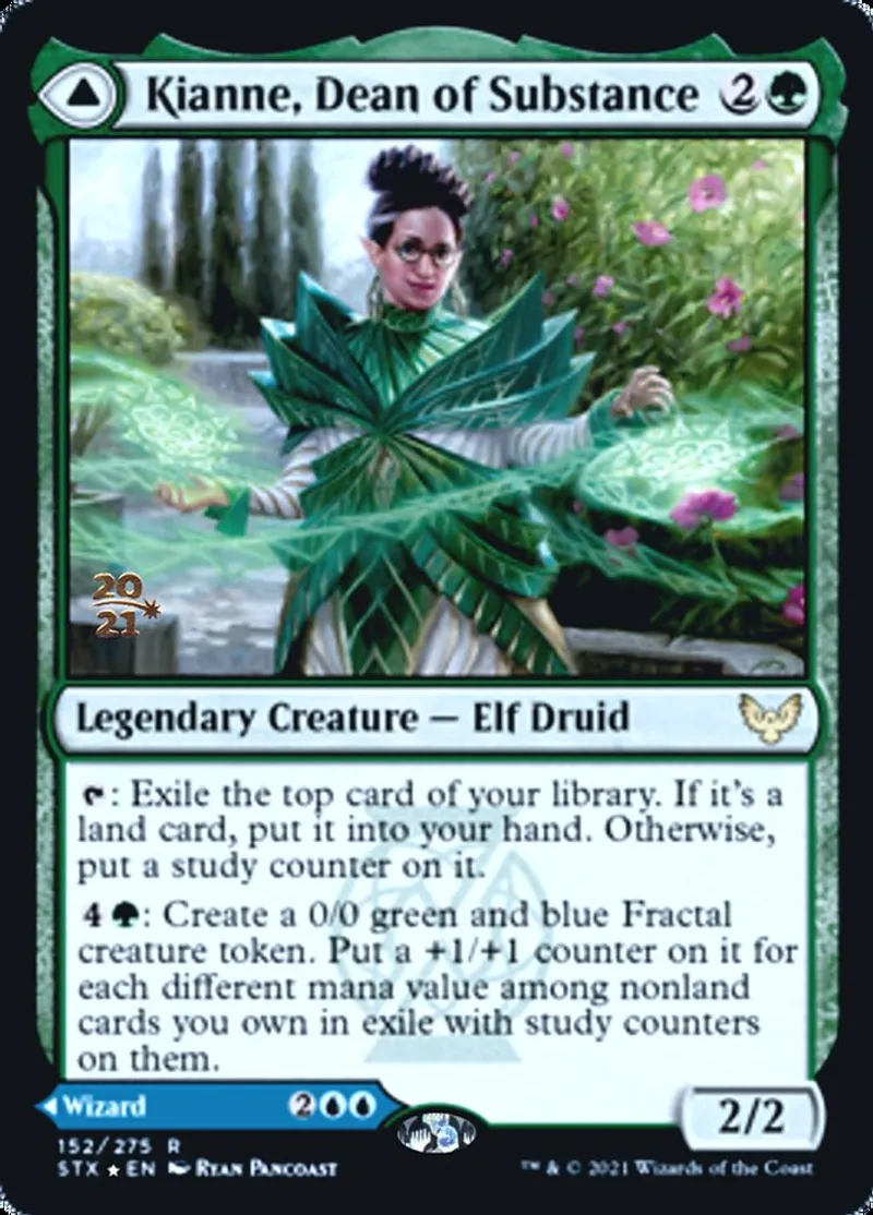 Magic: the Gathering (mtg) Rare Legendary Creature - Elf Druid Kianne, Dean of Substance from Prerelease Cards (pPRE) last updated 2026-02-21 16:37:32