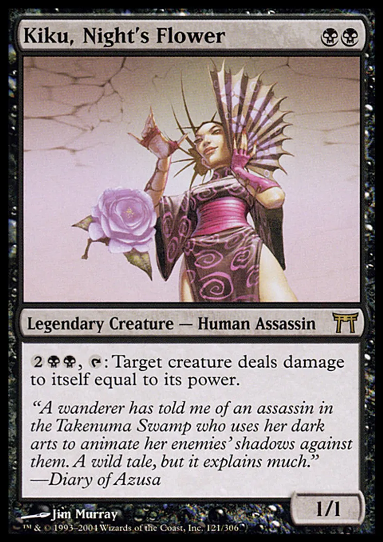 Magic: the Gathering (mtg) Rare Legendary Creature - Human Assassin Kiku, Night's Flower from Champions of Kamigawa (CHK) last updated 2026-02-24 15:52:32