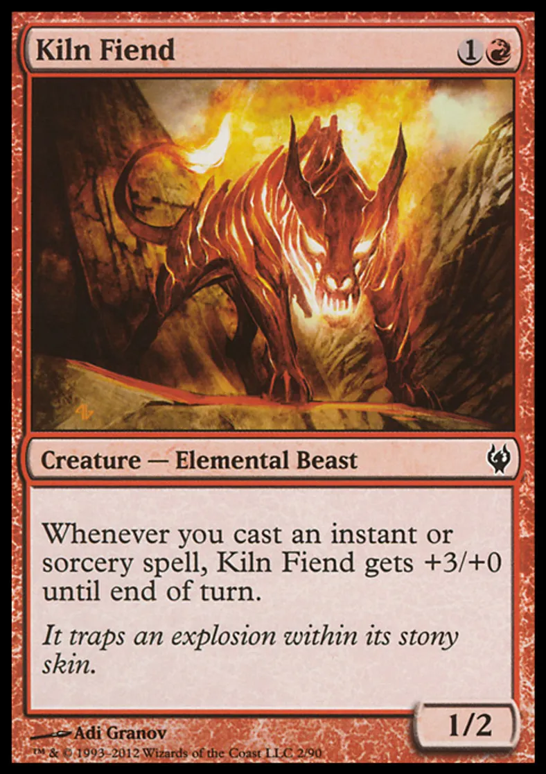 | Oracle Text | Whenever you cast an instant or sorcery spell, Kiln Fiend gets +3/+0 until end of turn. | ||
