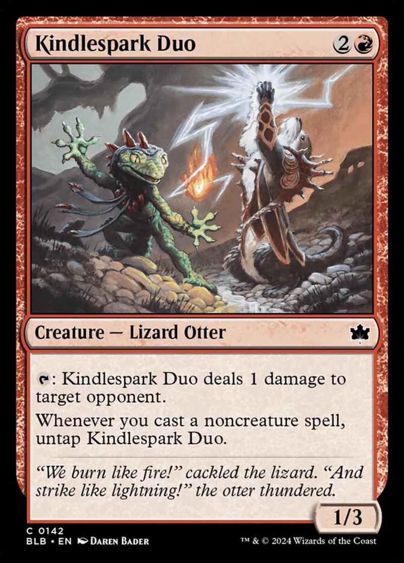 Magic: the Gathering (mtg) common Creature — Lizard Otter Kindlespark Duo from Bloomburrow (blb) last updated 2026-02-21 15:24:32