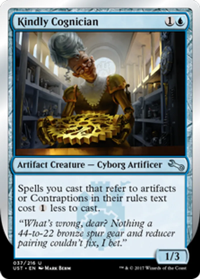 Magic: the Gathering (mtg) Uncommon Artifact Creature — Cyborg Artificer Kindly Cognician from Unstable (UN3) last updated 2026-02-21 16:49:02