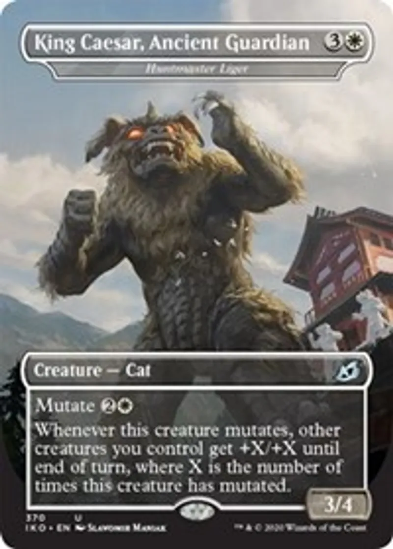 Magic: the Gathering (mtg) Uncommon Creature — Cat King Caesar, Ancient Guardian - Huntmaster Liger from Ikoria: Lair of Behemoths (IKO) last updated 2026-02-24 15:28:06