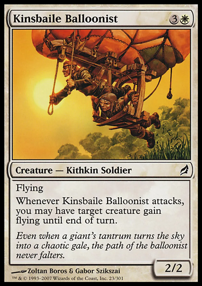| Oracle Text | Flying Whenever Kinsbaile Balloonist attacks, you may have target creature gain flying until end of turn. | ||