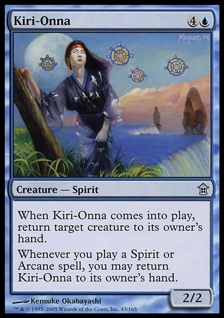 | Oracle Text | When Kiri-Onna enters the battlefield, return target creature to its owner's hand. Whenever you cast a Spirit or Arcane spell, you may return Kiri-Onna to its owner's hand. | ||