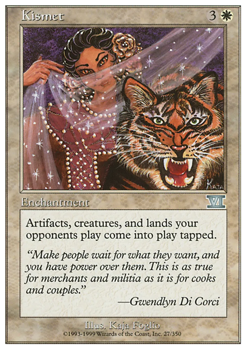 Magic: the Gathering (mtg) Uncommon Enchantment Kismet from Classic Sixth Edition (6ED) last updated 2026-02-21 15:06:07