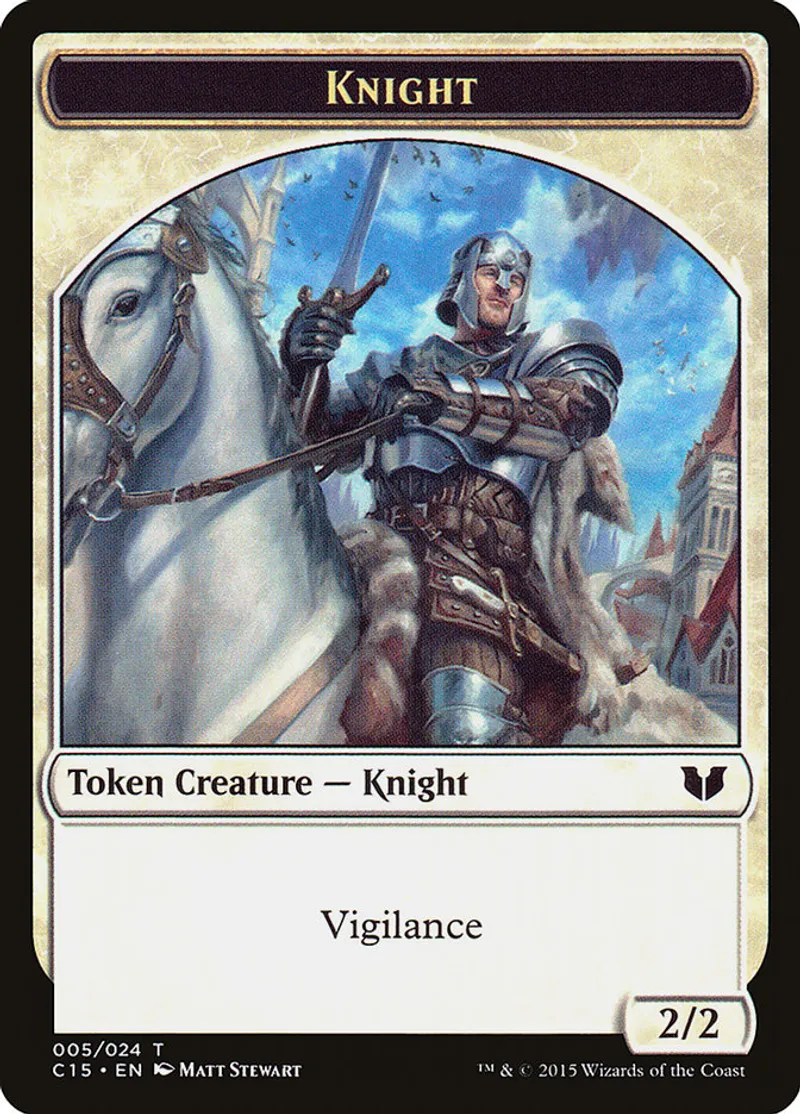 Magic: the Gathering (mtg) Token Token Creature - Knight // Token Enchantment Creature - Spirit Knight from Commander 2015 Tokens (TC15) last updated 2026-02-24 15:01:06