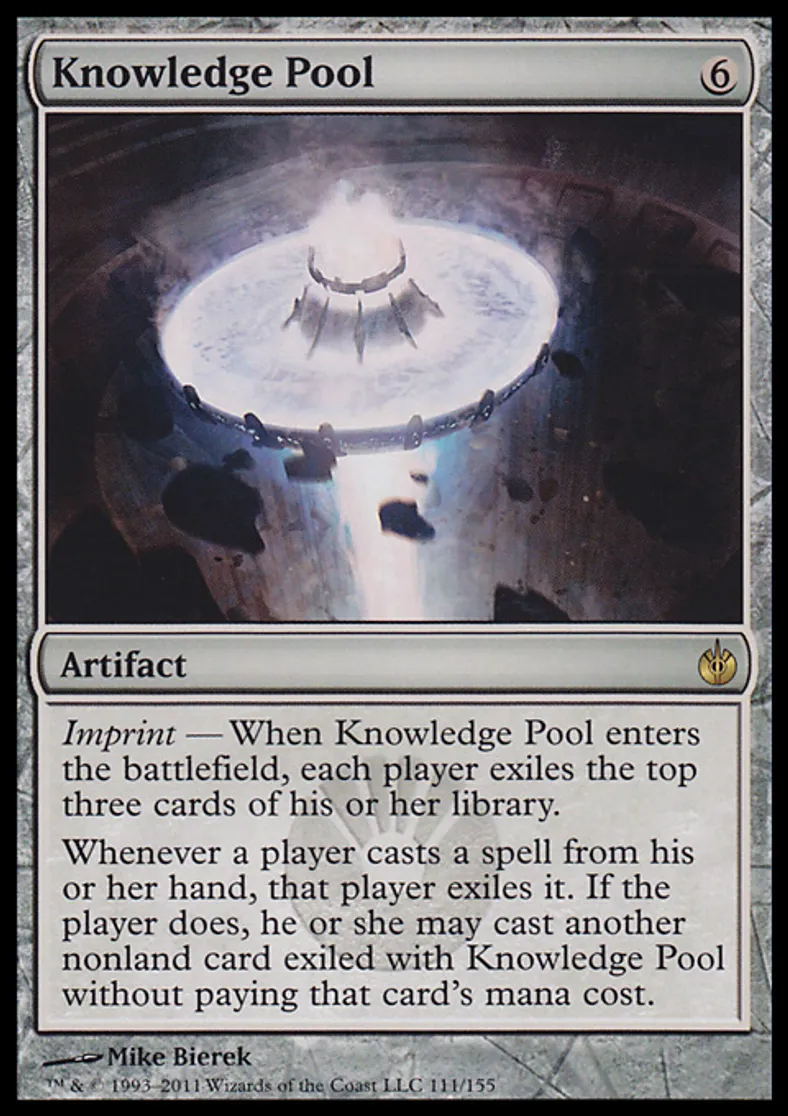 | Oracle Text | Imprint — When Knowledge Pool enters the battlefield, each player exiles the top three cards of his or her library. Whenever a player casts a spell from his or her hand, that player exiles it. If the player does, he or she may cast another nonland card exiled with Knowledge Pool without paying that card's mana cost. | ||