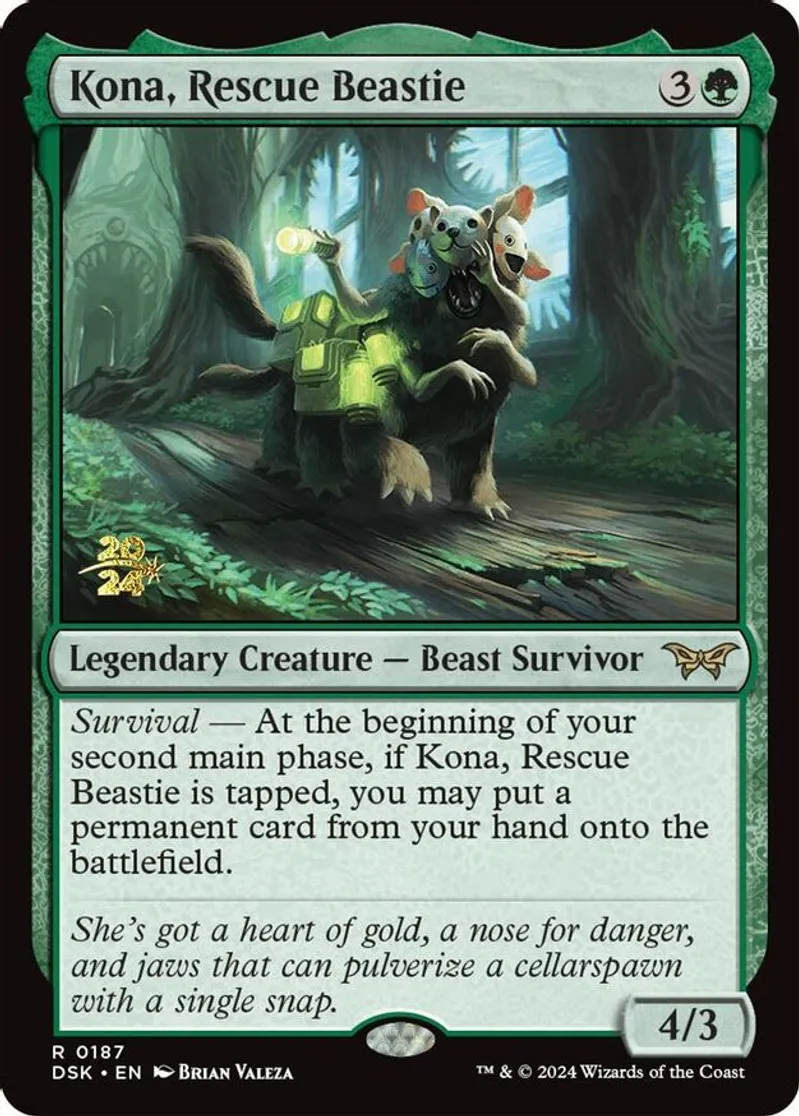 Magic: the Gathering (mtg) Rare legendary creature — beast survivor Kona, Rescue Beastie from Prerelease Cards (pPRE) last updated 2025-12-16 15:17:02
