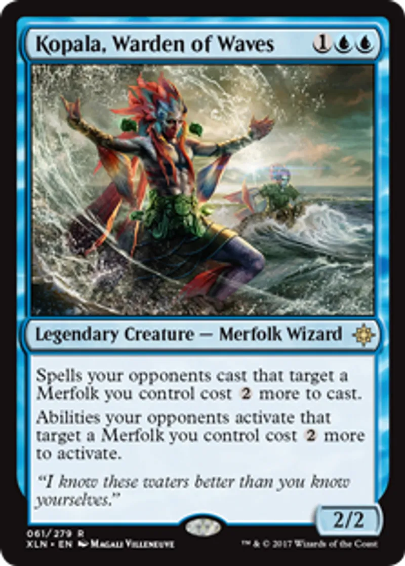 Magic: the Gathering (mtg) Rare Legendary Creature - Merfolk Wizard Kopala, Warden of Waves from Ixalan (XLN) last updated 2026-02-21 16:47:36