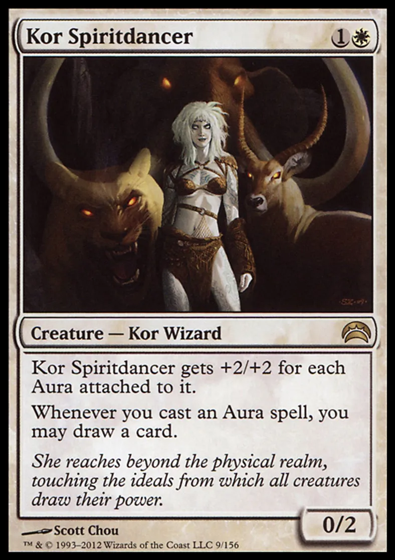 | Oracle Text | Kor Spiritdancer gets +2/+2 for each Aura attached to it. Whenever you cast an Aura spell, you may draw a card. | ||