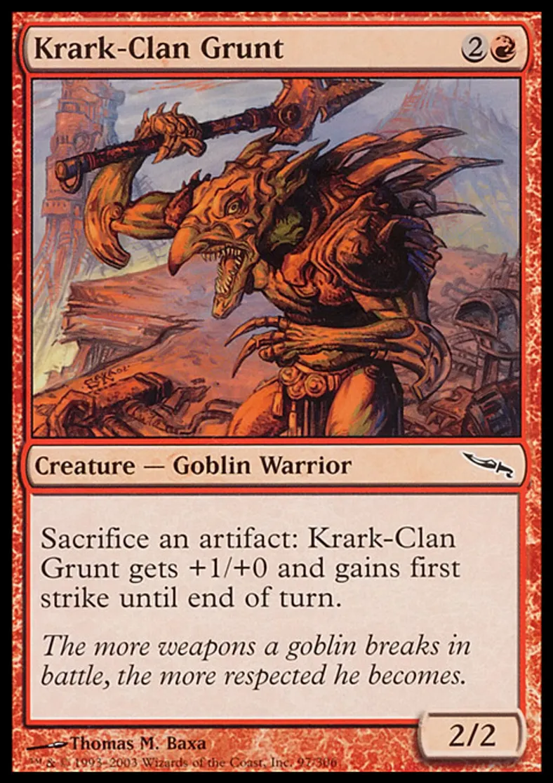 Magic: the Gathering (mtg) Common Creature - Goblin Warrior Krark-Clan Grunt from Mirrodin (MRD) last updated 2026-02-21 17:39:33