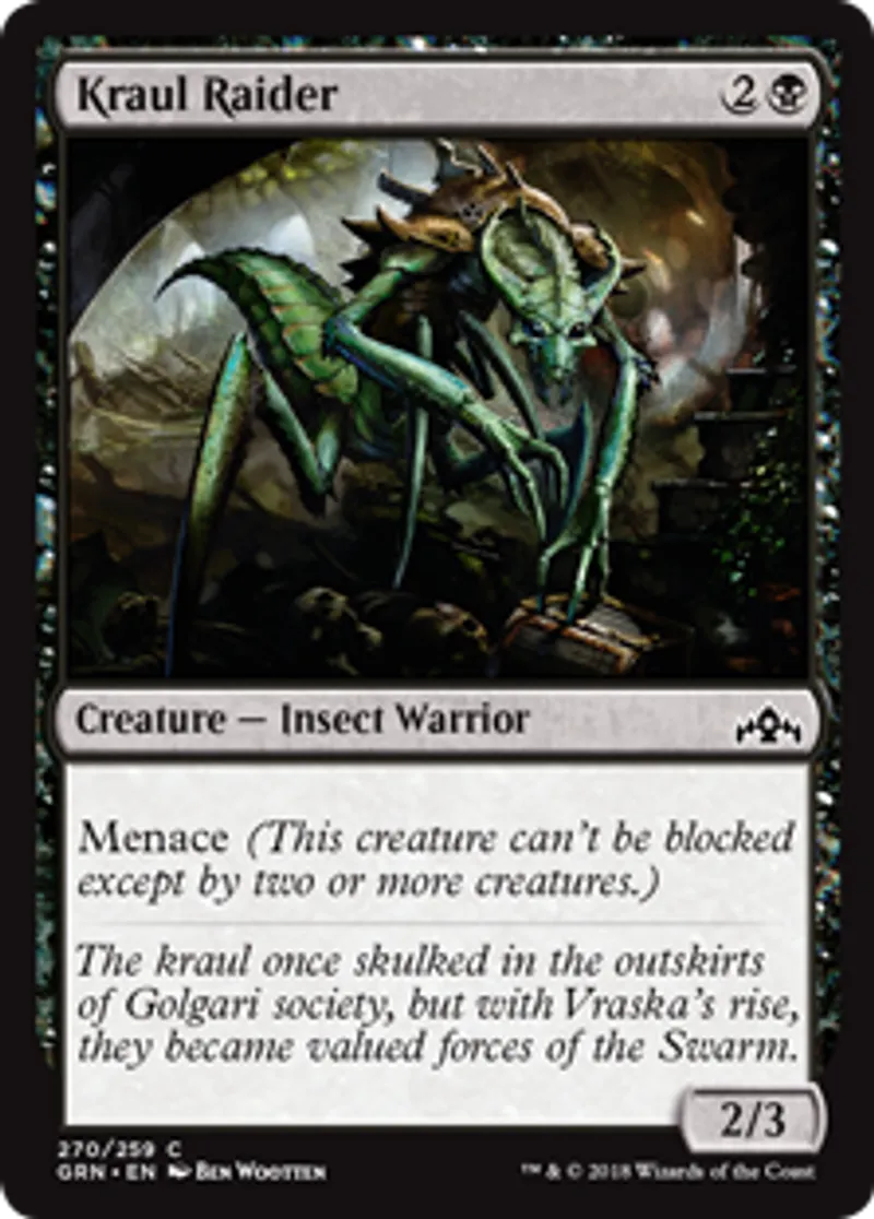 | Flavor Text | The kraul once skulked in the outskirts of Golgari society, but with Vraska's rise, they became valued forces of the Swarm. | ||