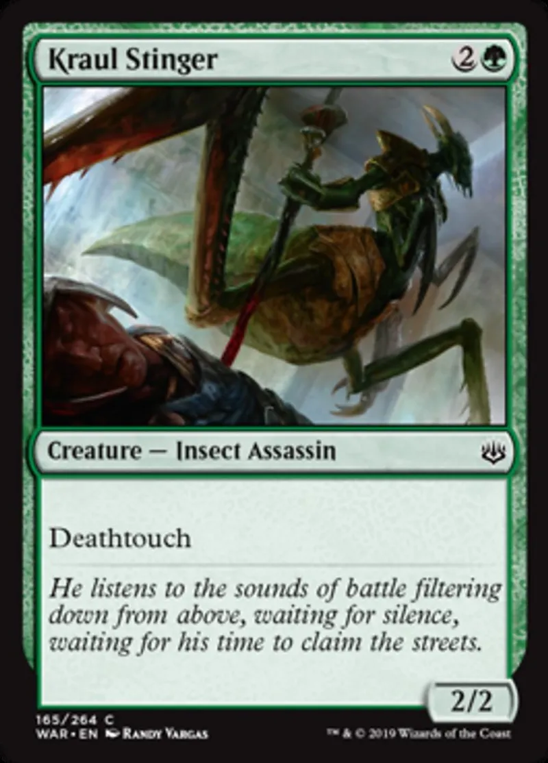 Magic: the Gathering (mtg) Common Creature — Insect Assassin Kraul Stinger from War of the Spark (WAR) last updated 2026-02-21 16:58:06