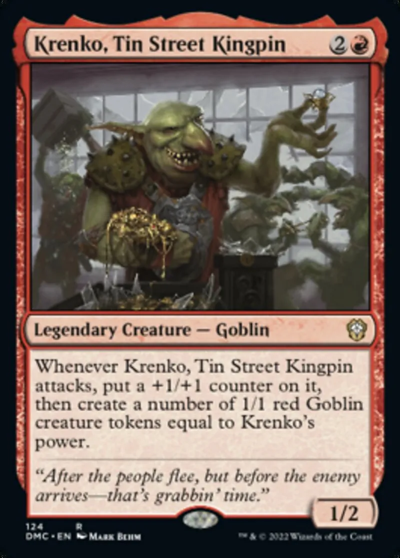 Magic: the Gathering (mtg) rare Legendary Creature — Goblin Krenko, Tin Street Kingpin from Dominaria United Commander (dmc) last updated 2026-02-25 14:24:32