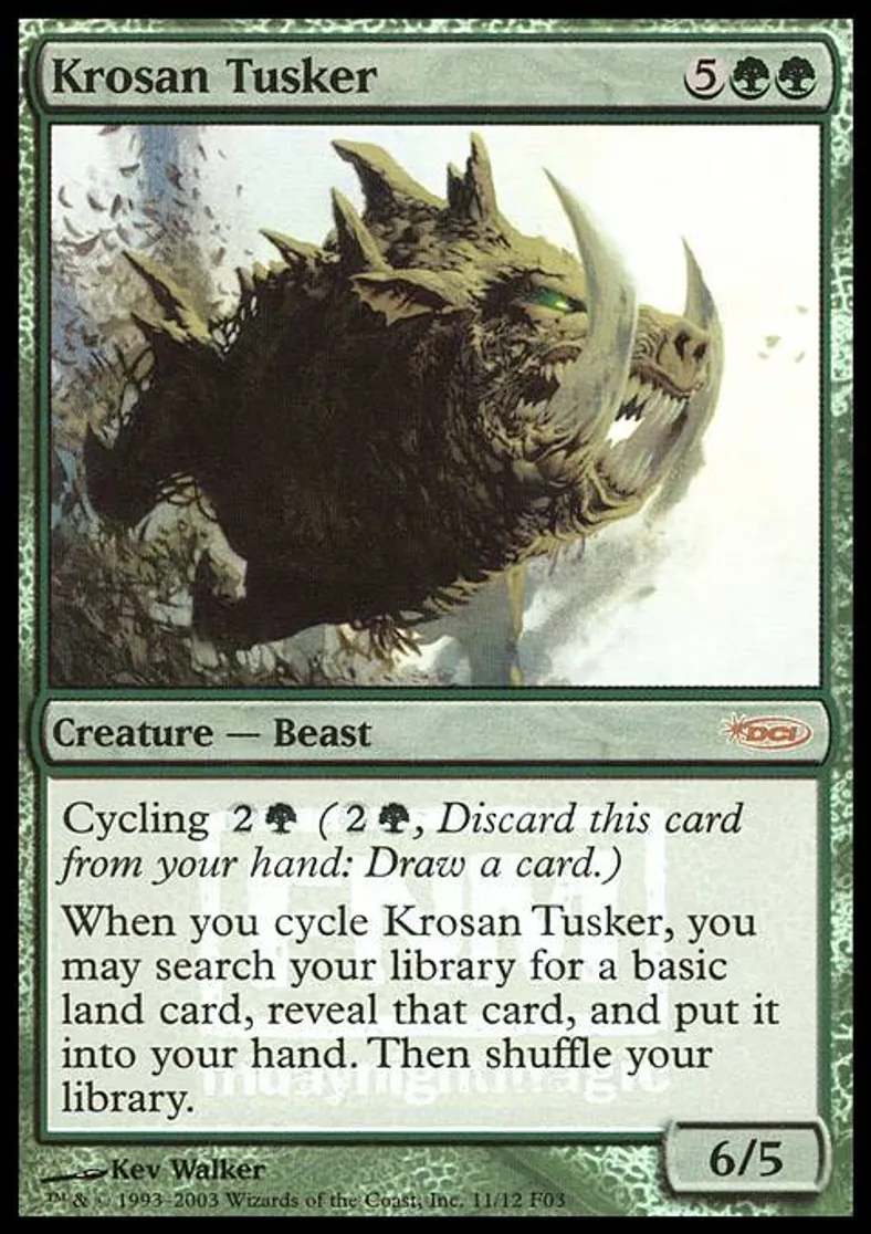 When you cycle Krosan Tusker, you may search your library for a basic land card, reveal that card, put it into your hand, then shuffle your library. | ||